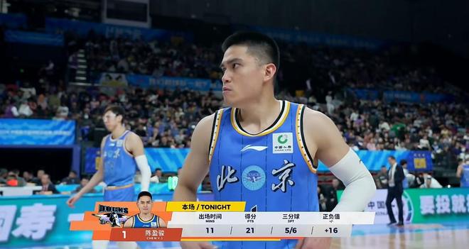 上半场许利民把本土后场双核用到了极致,把赵睿陈盈骏拆开各自带领一套阵容去打,效果奇佳,凭借赵睿、陈盈骏的高质量输出(陈盈骏半场21分,三分6中5),北京一度将领先扩大来到26分。