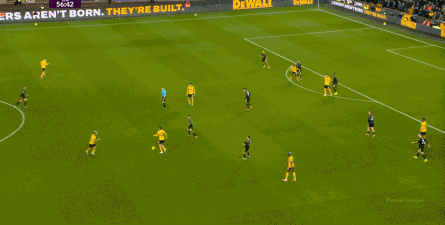 丢球之后,狼队的反扑逐渐上线,通过中场区域的争夺得手之后,同样使用343阵型的狼队也将方向瞄准到了曼联的两肋: