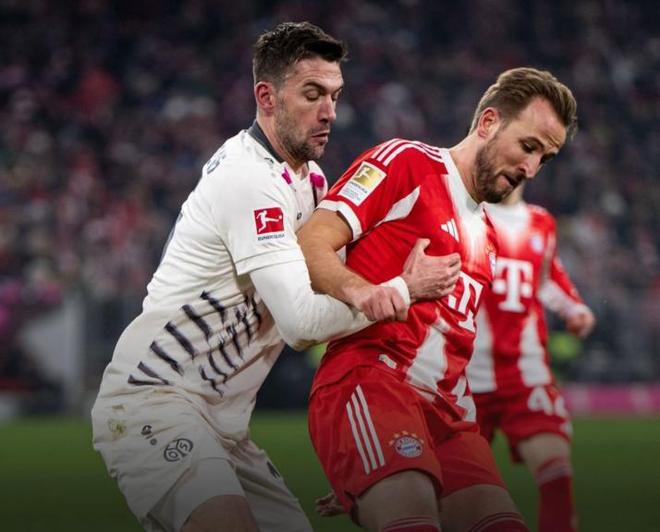 比赛开打之后,摆出五后卫准备在安联球场死守的美因茨,在第16分钟率先制造了一次有威胁的进攻,李在城的头球攻门击中门框被弹出,随后被诺伊尔没收,4分钟之后,凯恩也回敬了对手一记头球攻门,角度太正被美因茨门将奋勇托出横梁。
