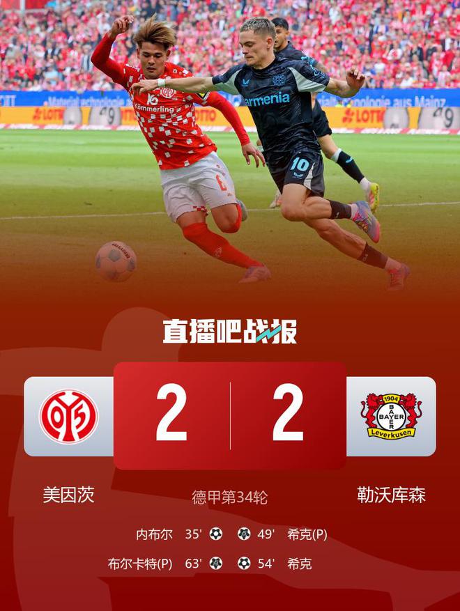德甲收官-勒沃库森2-2美因茨 希克造点+双响格里马尔多伤退